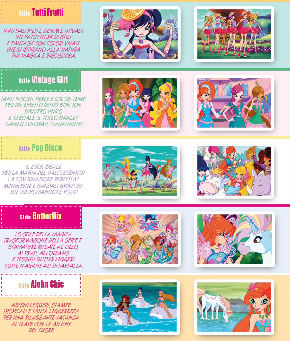 Il ne reste plus que 6 épisodes inédits à découvrir si je ne me trompe pas, et inutile de vous dire que ces derniers épisodes nous réserve encore quelques surprises au niveau vestimentaire ! Aujourd’hui, je vous propose de découvrir les deux dernières collection de cette 7ème Saison de Winx Club, qui rappelons le ne sera pas la dernière, puisque nous aurons droit à une Saison 8 après les deux Saisons de World of Winx et le 4ème film … Bref, voici le résumé des deux nouvelles collections dont vous avez l’aperçus juste au dessus :